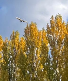 すると白くて大きな鳥が、つがいで優雅に飛んできました!
