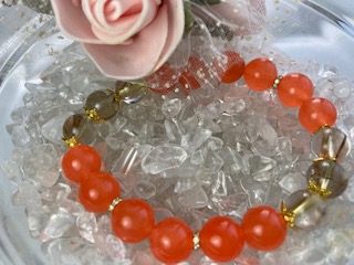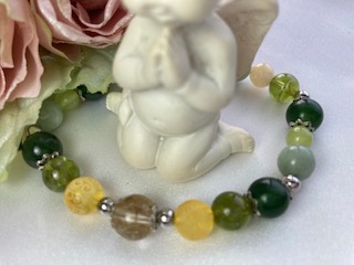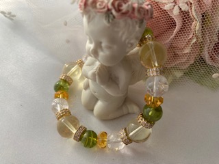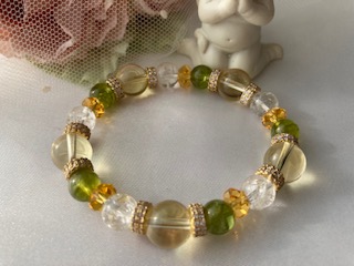 | レモンクオーツ10ミリ、シトリン、 ペリドット、クラック水晶6ミリ 太陽のエネルギーブレスです。「月」の 方には浄化と元気と行動力を!ちょっと オッチョコチョイなお月さんには 明るい愛嬌を!(^^) 「土」さんにはズバリ「金運」!! 土さんには大きめの目立つアクセサ リーが開運になります。 第3チャクラ対応ですので、心を開く為の 知識と知性、決断力を高める 大人の魅力があるブレスです。 エネルギーの巡りが良くなる。 前向きになる。また欲望、依存を抑え、 腐れ縁を断ち切る。早い対応力が付く 効果があります。 |