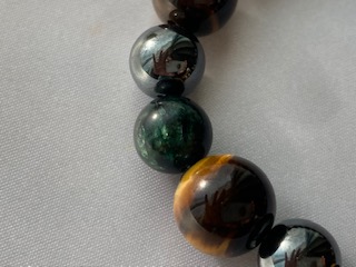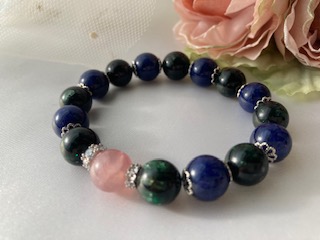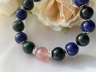 | クロムダイオプサイド、 インペリアルソーダライト ローズクォーツ 各10㍉ 総10ミリブレスですので、ボリュ ーム感がありますが、知性的に見えます。 クロムダイオプサイド【緑色透輝石】を 主にしています。黒っぽく見えますが 光が当たりますと中のグリーンが輝き だし神秘的です。 肉体と精神のデトックス、インペリアル ソーダライトも、共に霊性とトラウマ 恐怖、不安等の精神面、意識面に対し ての働きかけがあります。 |