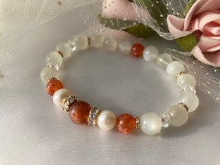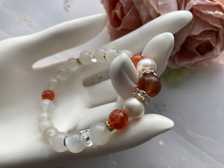 | アベンチュレッセンス(極上サンストーン)10㍉8㍉、ムーンストーン、水晶、パール | |